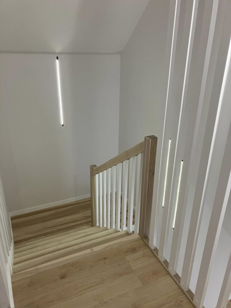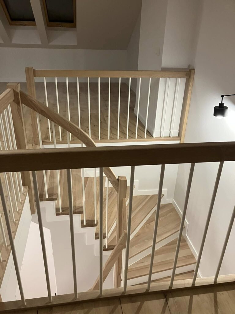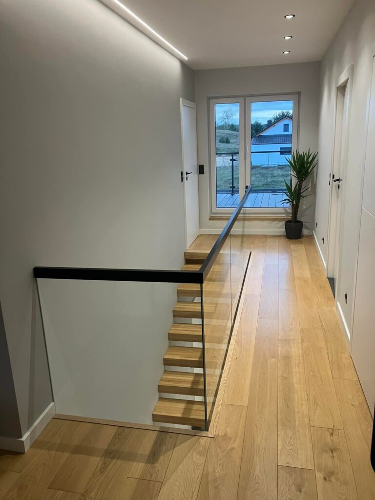 Wykonujemy schody drewniane na zamówienie, dostosowane do indywidualnych potrzeb i warunków technicznych budynku. Każdy etap produkcji realizujemy we własnym zakresie – od klejenia płyt stolarskich, przez precyzyjną obróbkę, aż po montaż gotowego wyrobu.